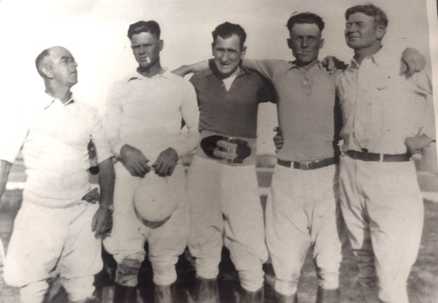 James Walker sought out local riders and ranchers who were interested in learning to play polo. Since there were many horsemen in the Yuma area, Walker quickly found eager learners, but it took time to for the “cowboy polo” of the local men—with their large, lumbering horses and heavy western saddles—to adapt to Walker’s style of fast, competitive polo. Two polo teams were formed in 1928, and both were coached by James Walker. The Yuma Valley team played on a field near Forman’s Store located at Avenue B and County 12½ Street. The McDaniel team had a field near the large McDaniel packing shed south of Somerton. E.M. McDaniel was a prominent vegetable grower and shipper, and the first McDaniel team was comprised of his four sons. (Later, a son-in-law was a member of the four-man team.) When the teams disbanded for the summer in 1928, it was announced that a Yuma polo club would be formed in the fall and that polo saddles and other equipment had been ordered from England.