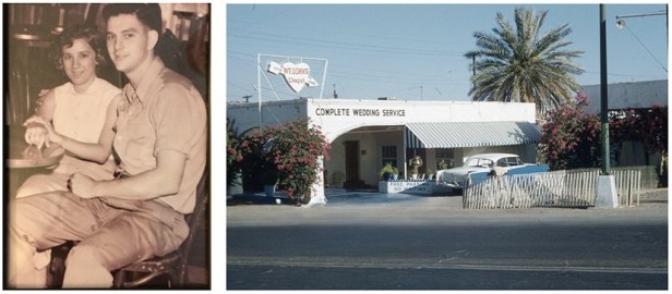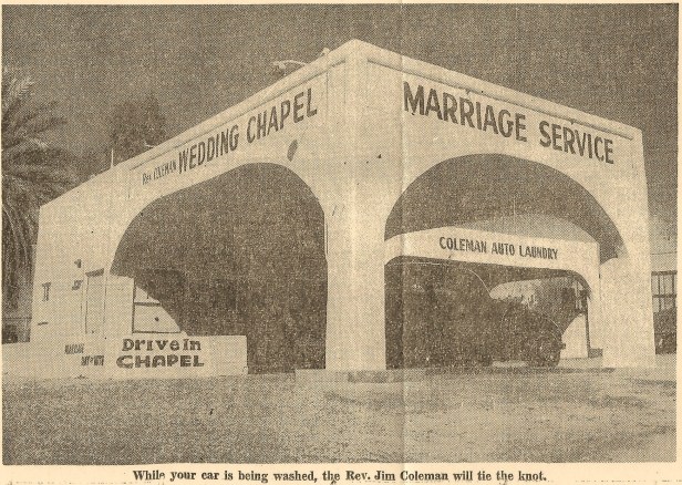 After closing Yuma’s Famous Drive-In Wedding Chapel at the end of 1956, Rev. Charles Cady remained in the wedding chapel business for another 20 years, first at the Little Chapel Around the Corner in Las Vegas, and then at the storefront Abbey Wedding Chapel in downtown Los Angeles. His L.A. chapel was only a block from the courthouse, and his ads promised 5-minute weddings for couples possessing the necessary paperwork. Déjà vu!