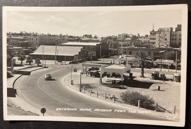 Prior to opening his wedding chapel in early 1948, James Coleman had operated a car wash (“auto laundry”) and auto engine steam cleaning business. He intended to stay in that business when he purchased the gas station pictured in the above photo. His was a prime location since it was the first landmark that motorists from California would see as they entered Yuma on Highway 80 over the Ocean to Ocean Bridge rounding the bend onto Yuma’s 1st Street. Justice of the Peace R.H. Lutes had converted the second gas station in the photo into an after hours wedding chapel a few years earlier. It didn’t take Rev. Coleman long to realize that with his location–and his ordained pastor status–that he was meant to join Yuma’s thriving marriage industry.
