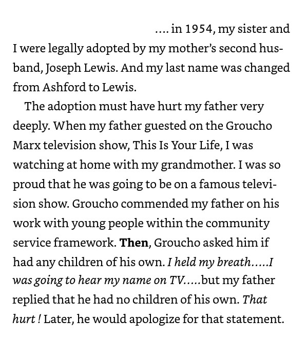 In 2004 Adrienne Bratton, one of Emmett Ashford’s two daughters, published a brief biography of her father. The book reflected her pride in her father’s groundbreaking career in professional baseball, but it also revealed some painful memories of her parents’ divorce and the lengthy loss of contact with her father that followed: