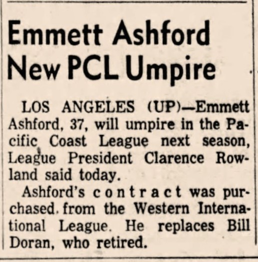 When Emmett Ashford’s trailblazing career as a minor league umpire began in 1951 at age 35, he had already amassed a decade of umpiring experience, including college games for USC and UCLA, as well as National Softball Congress tournament games in Phoenix. Prior to joining organized baseball Ashford also completed three years of military service with the U.S. Navy.