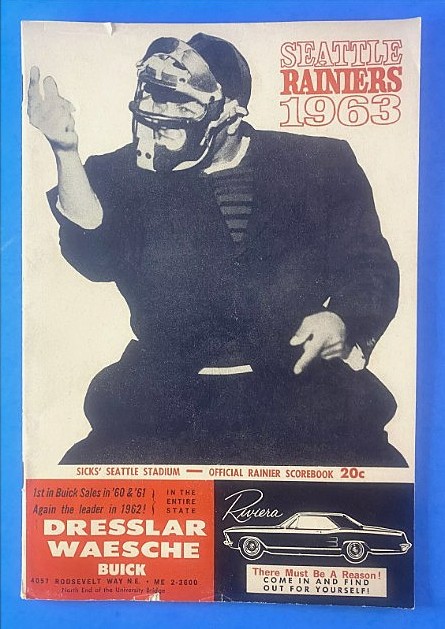 Since Emmett Ashford was better known than most of the players in the Pacific Coast League, his image was used on league publications such as this Seattle Rainiers scorebook. Ashford, who was promoted to the position of PCL umpire-in-chief in 1963, would not only sign autographs for fans; he travelled with a typewriter so he could answer his fan mail.
