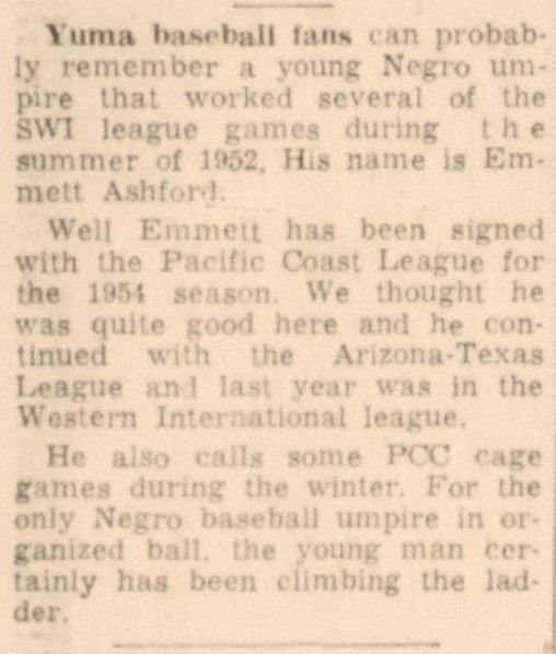 At first the SWI league avoided assigning Emmett Ashford to games in El Paso out of concerns over potential racial incidents. When he later worked games there he was gratified by the positive fan response. However, throughout much of his umpiring career Ashford had to deal with segregation off the field even when he was being treated with respect and adulation on the field. He often had to arrive at host cities before his fellow (white) umpires in order to make his lodging and dining arrangements.