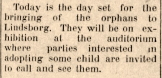Throughout my lifetime, Lindsborg, Kansas has been like a second hometown for me, since both of my parents and many of my relatives were from the Lindsborg area. I mention this because on June 28, 1912, an orphan train came to Lindsborg from New York, and an ancestor of mine was among the children who were put on display and “given away” to willing Lindsborg families.