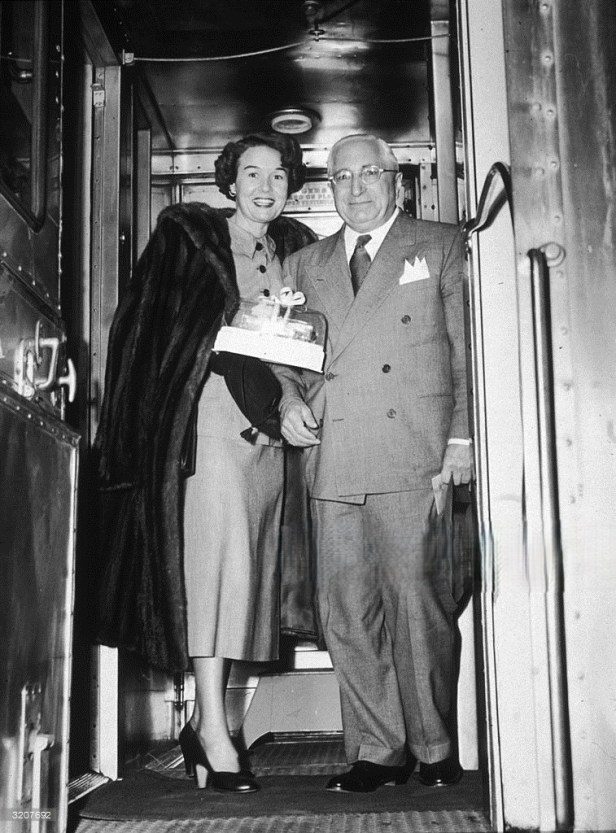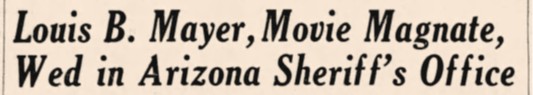 On December 4, 1948 Louis B. Mayer, longtime head of MGM Studios and one of the nation’s richest men, married his second wife, Lorena Danker, at the Yuma County Jail! The couple had eloped by train from Pasadena, arriving at Yuma’s Coronado Motor Hotel at 4 a.m. Hollywood reporters and photographers invaded Yuma after being tipped off about the elopement, so plans for a courthouse wedding were scrapped. Instead, local law enforcement officers escorted the couple to the Yuma County Jail where they were married by Justice of the Peace R.H. Lutes in Sheriff Jack Beard’s jail office.