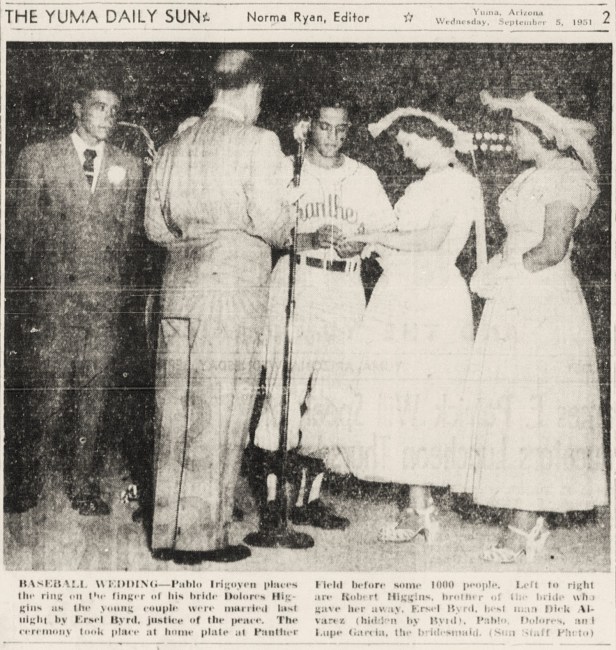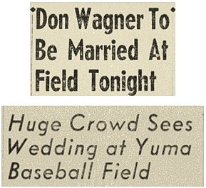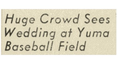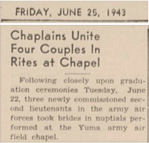 Thousands of West Coast soldiers and sailors facing deployment eloped with their sweethearts to Yuma during World War II and later during the Korean War. But there were also large numbers of military personnel stationed in Yuma County as part of the Desert Training Center and at the Yuma Army Air Field. The YAAF chapel was the site of many weddings, including the quartet of weddings noted in the above article.