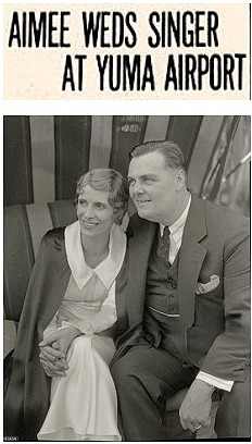 The article on the right incorrectly states that the aerial wedding of May 1, 1934 was Yuma’s first. Nine years earlier aviator Martin Jensen and Margaret Hannigahn were a thousand feet above Yuma when married by Yuma Judge J.H. Smith. But the 1934 marriage of John Dahl and Eleanor Sessler did take aerial weddings to new heights, since the ceremony was performed 3000 feet above the county courthouse.