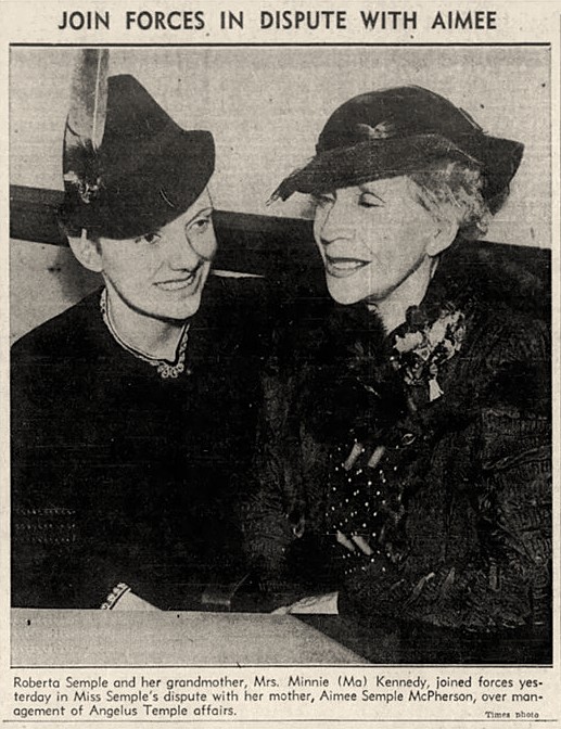 When Roberta Semple sued the Angelus Temple attorney for slander, her mother Aimee sided with the attorney, resulting in a permanent estrangement of mother and daughter. Aimee’s mother, Minnie Kennedy, had been removed from the church’s administration—and from Aimee’s life—a few years earlier.