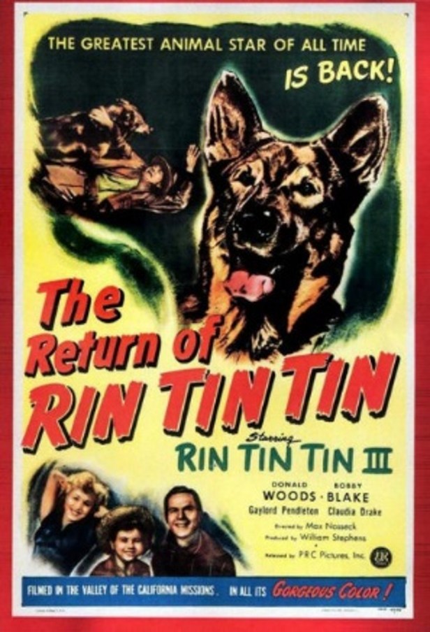 Rin Tin III, a grandson of the original dog, was billed as the star of “The Return of Rin Tin Tin” from 1947. The boy in the film was played by “Bobby” Blake, who would later become infamous as actor Robert Blake. During World War II, Rin Tin Tin III was used to recruit volunteers for the “Dogs for Defense” program. Lee Duncan, who had served in World War I, trained hundreds of the dogs who were donated for this effort.